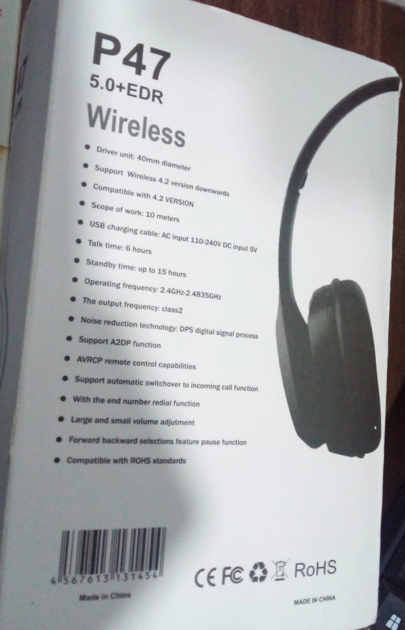 Wireless Headphone Over The Head Bluetooth Headset Foldable Headband Hands-free with Calling Function (1 Pc)