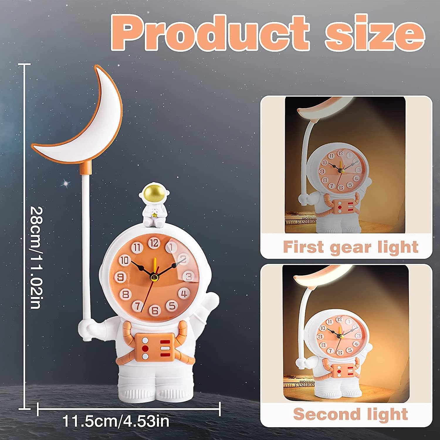 • EVEN & BRIGHT LIGHT - LED reading or learning table lamp provides a brighter luminous area Helps reduce eye strain due to uneven or low light Perfect LED desk lamp for astronaut with alarm clock.