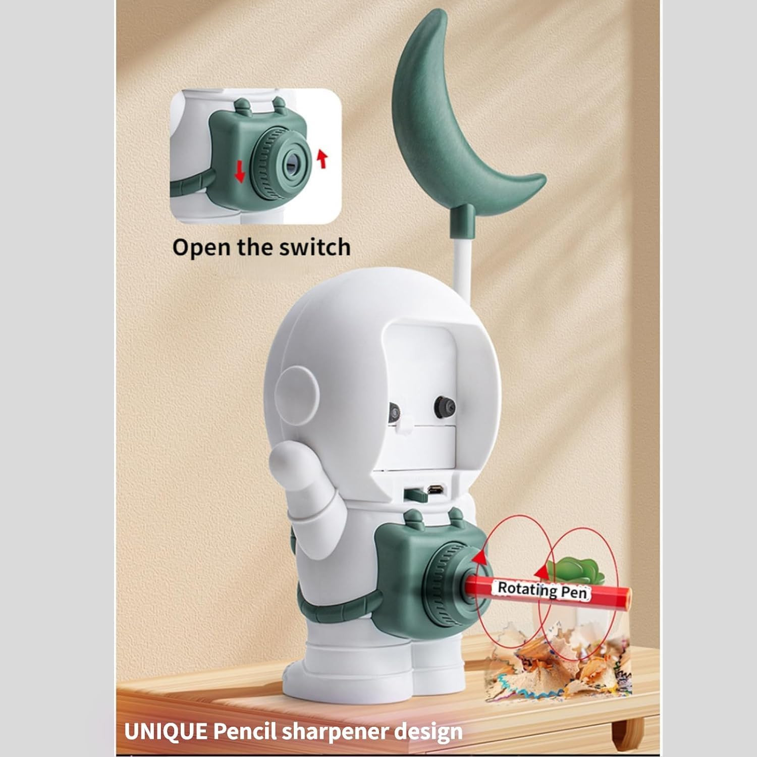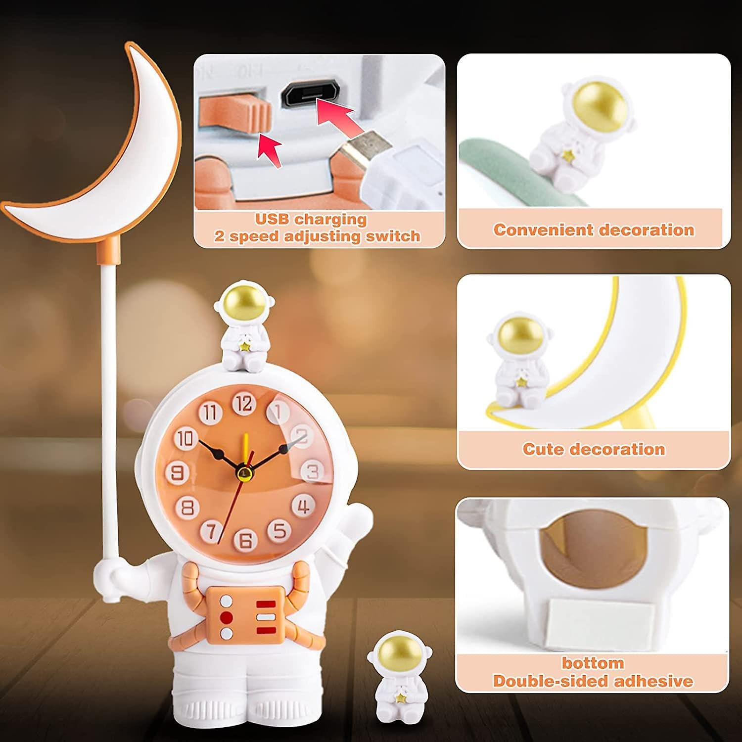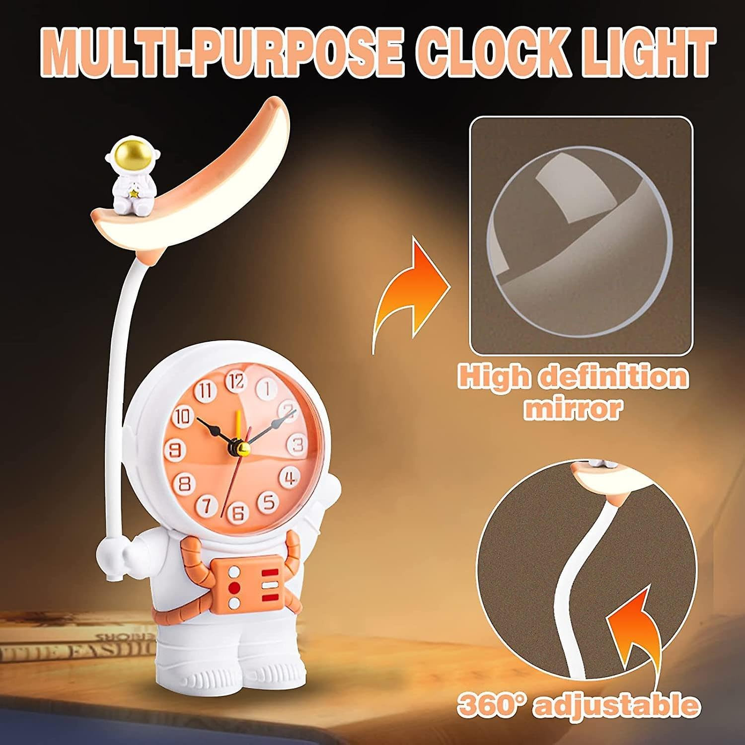 • MULTIFUNCTIONAL - The cute kids desk lamp can also be used as a pencil sharpener, night light, office light, or alarm clock. Multi-Function Cute Astronaut Foldable USB Charging Reading Light For Children Bedroom Bedside Study.