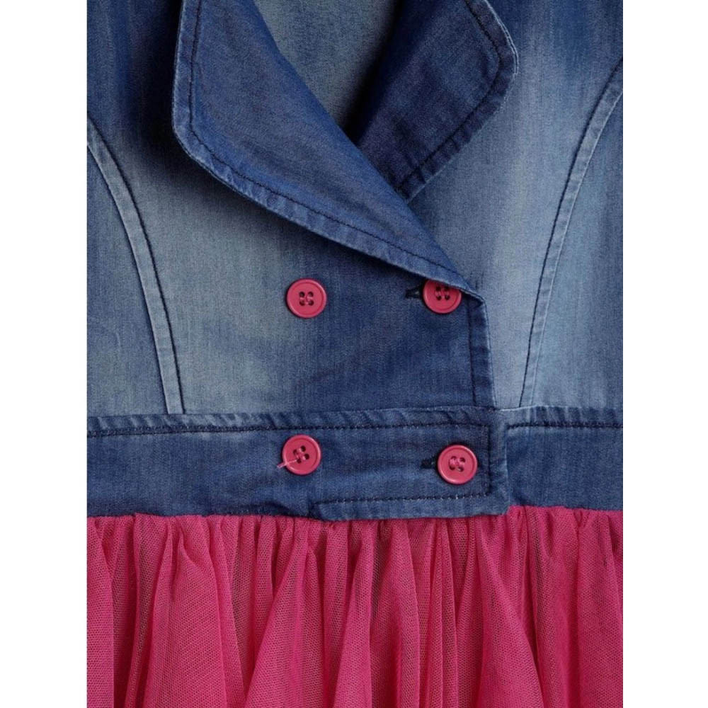 Girl's Polyester Crepe-Net Solid Shoulder Straps Shirt collar Dress