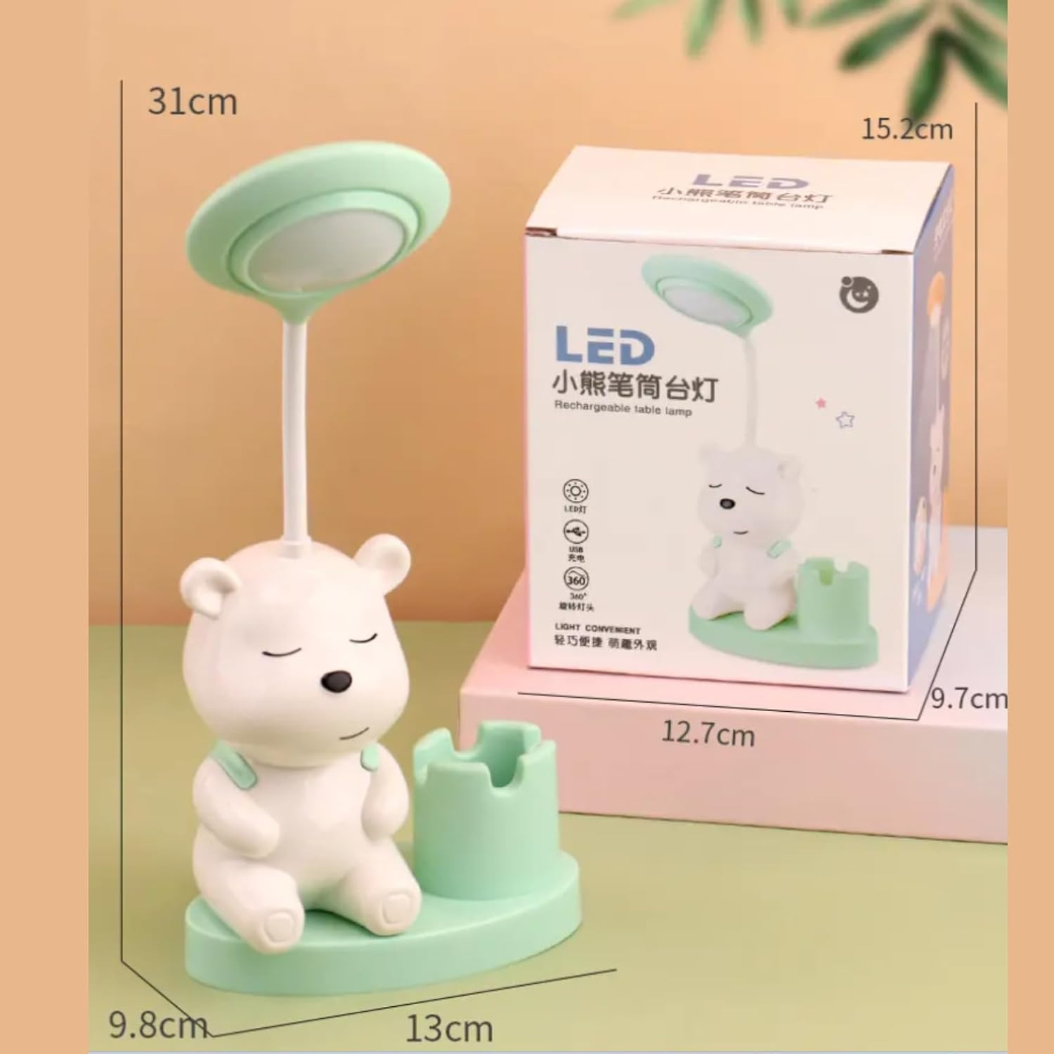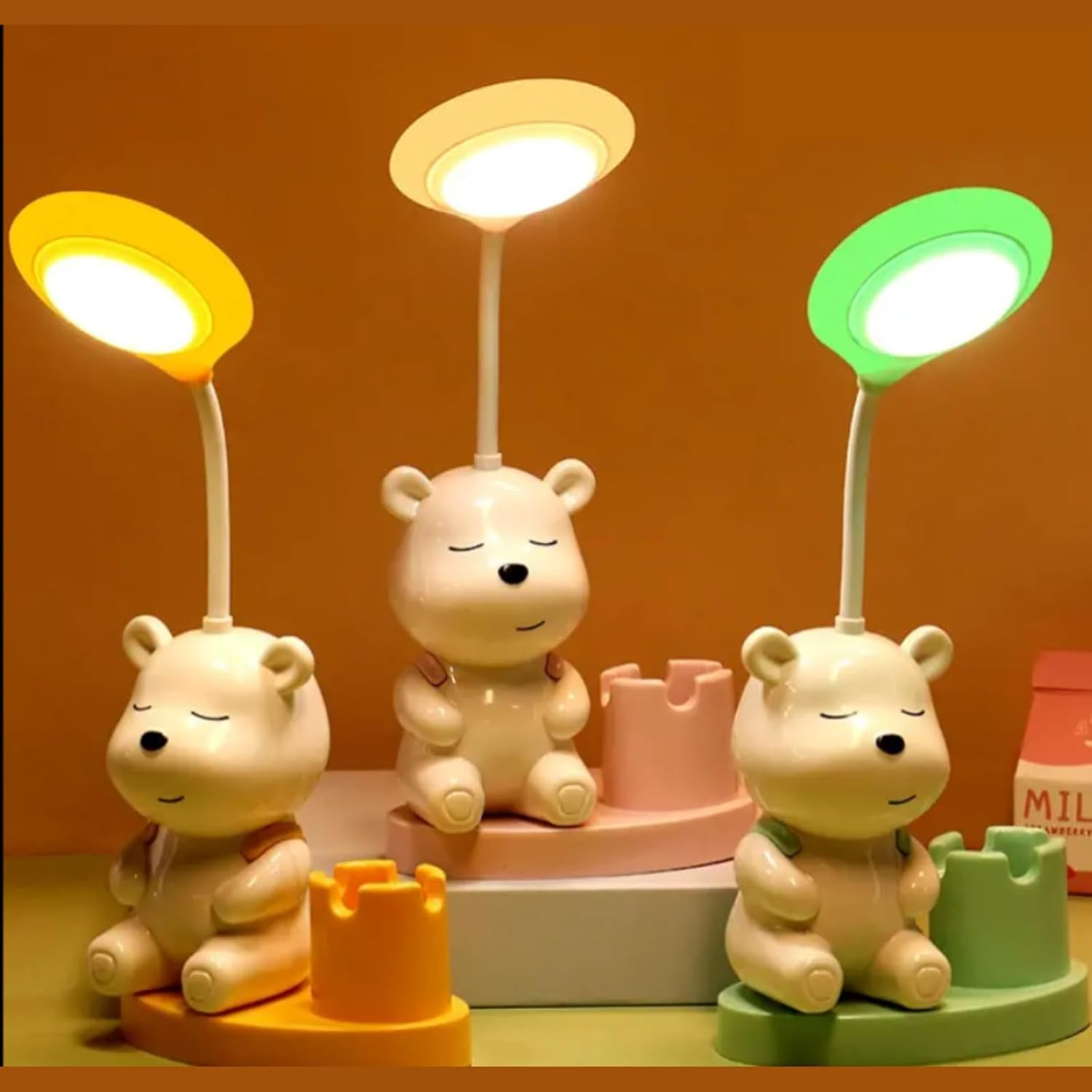 Kids Study Lamp Penholder-Adjustable Desk Light, Built-in Pen Holder, Eye-Caring LED, Energy-Efficiant, Ideal for Homework, Reading, and School Homework. (Bunny Table Lamp)