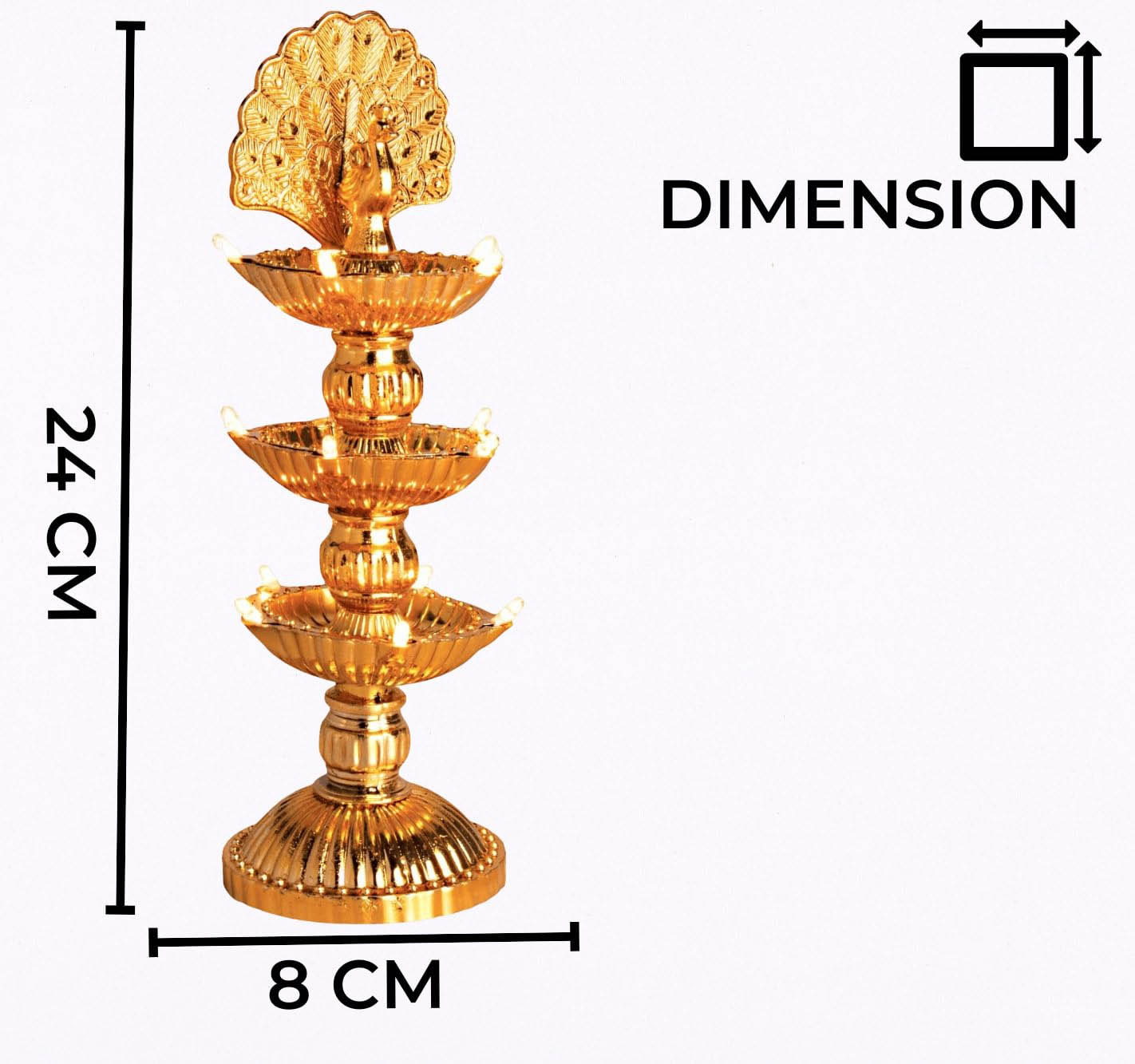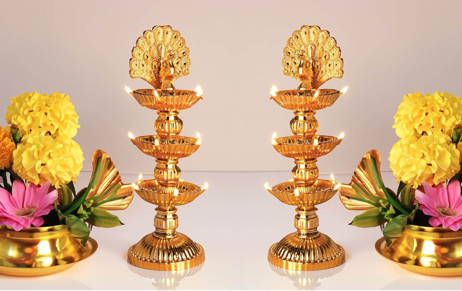 Nabhya 15 Deep Peacock 3 Layer Electric Gold LED Diya for Temple Table Diya Pack Of 2 Plastic (Pack of 2) Table Diya (Height: 10 inch)