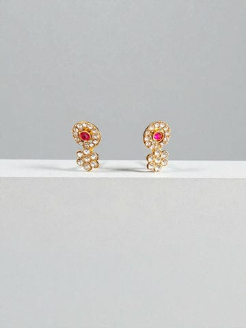 This exquisite gold-plated choker necklace and earring set features an intricate traditional Peacock (Mayur) motif at its center. Adorned with sparkling Kundan-style stones and contrasting red and green accents, the piece is finished with a lavish fringe of faux pearl drops. The broad, detailed design makes it a perfect statement piece for weddings, festivals, and grand ethnic events. The necklace is secured with an adjustable thread dori (cord).