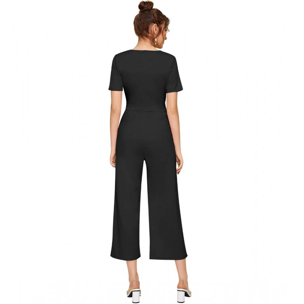 Women's Knitting stretchable Solid Round Neck Cap Sleeve Jumpsuit